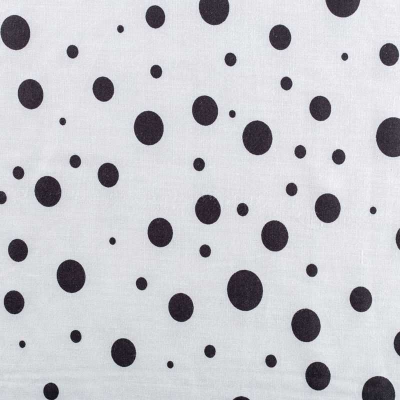 Плательно-блузочный штапель в черный разноразмерный горох на белом фоне. Мягкий, тонкий, нежный, пластичный, приятный на ощупь, хорошо драпируется, практичный. Подойдет для пошива платья, топа, блузки, рубашки, юбки, летних брюк.