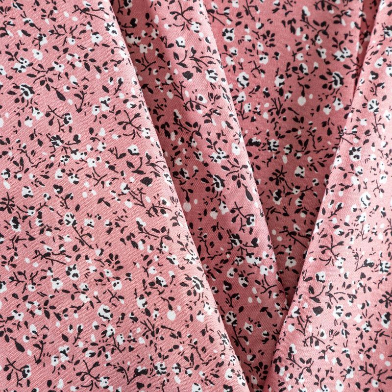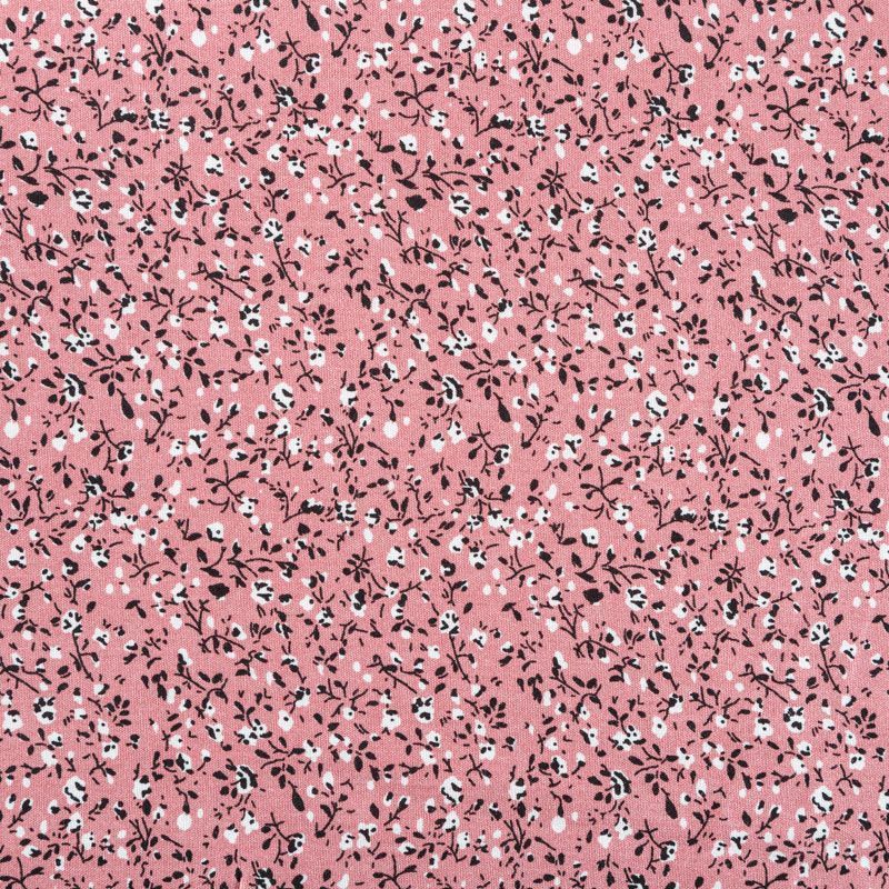 Плательно-блузочный штапель с мелким растительным принтом на темно-розовом фоне. Мягкий, тонкий, нежный, пластичный, приятный на ощупь, хорошо драпируется, практичный. Подойдет для пошива платья, топа, блузки, рубашки, юбки, летних брюк, комбинезона.