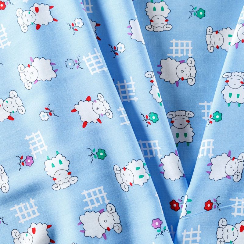 Штапель 069-08256 голубой принтованный
