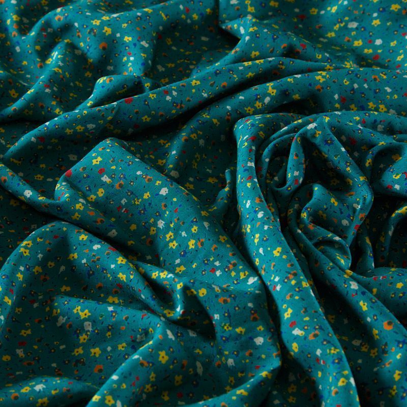 Штапель 069-13567 бирюзово-зеленый принтованный