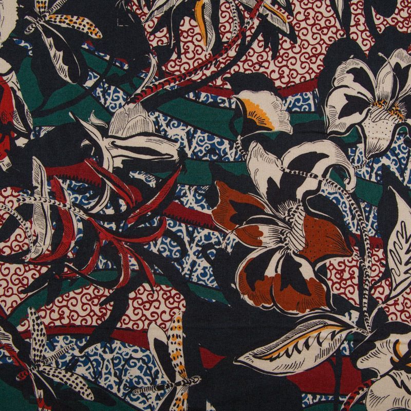Штапель 069-16214 черный принтованный