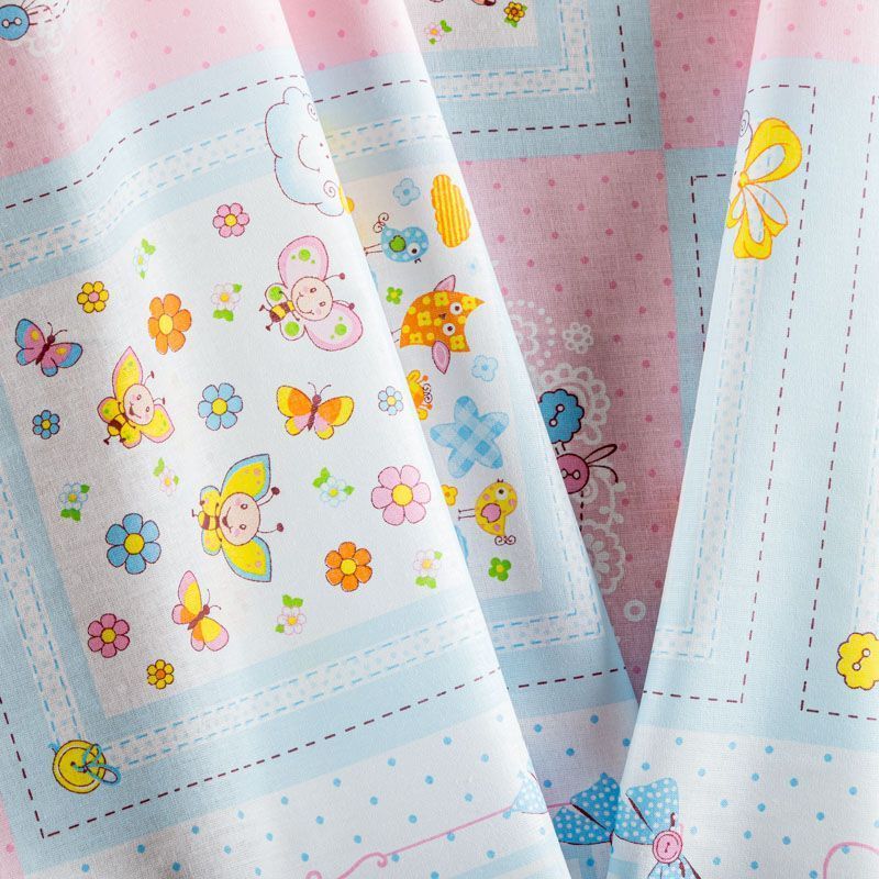 кань полотняного переплетения, тонкая, легкая и мягкая. Не вызывает аллергии, дышит и хорошо впитывает влагу. Милый детский принт в розово-голубых оттенках белом фоне прекрасно подойдет для пошива детской одежды, нательного белья, халатов и пижам.