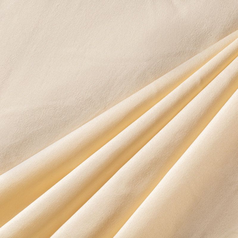 Шелковистая тафта сливочного оттенка. Поверность матовая, с благородным шелковым лоском. Полотно средней плотности, легкое, отлично держит форму, драпируется жесткими складками. Хорошо смотрится в платьях с пышными юбками и крупными драпировками, костюмах, корсетах для платья, вечерних и коктельных платьях.