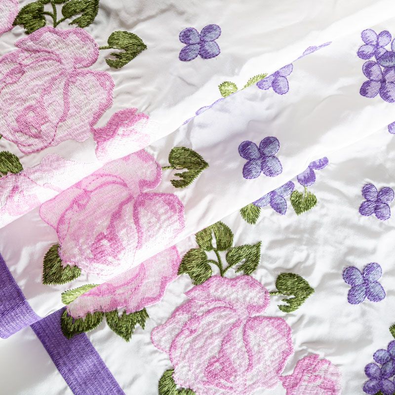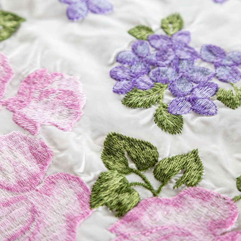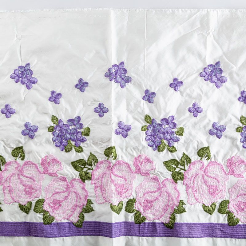 Вышивка на тафте Monnalisa высочайшего качества. Тафта белого цвета тонкая, но плотная, отлично держит форму, драпируется красивыми жесткими складками и загибами. Фактура гладкая, с матовым блеском. Богатая объемная цветочная вышивка выполнена в нежных пастельных оттенках. Подойдет как для самостоятельного изделия: юбка, ярусное платье, плащ, парка, так и для декорирования любых изделий: вставка в рукав, оборка, кокетка и т.д.