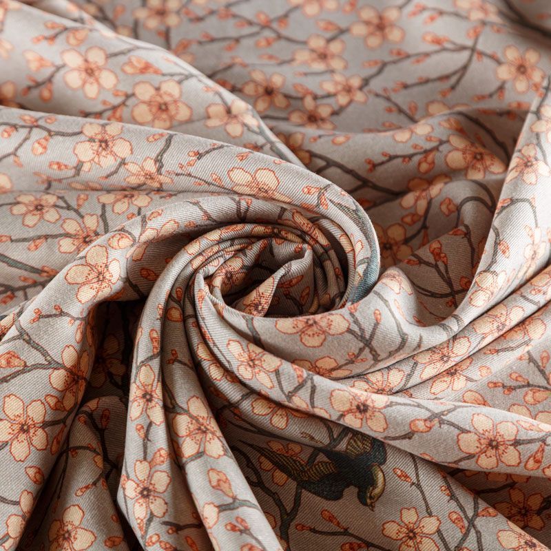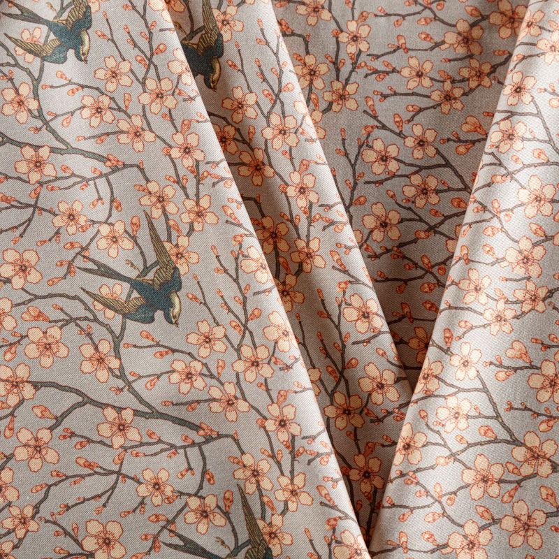 Шикарный итальянский тенсел в приглушенных оттенках с нежным весенним принтом. Эффектная рисунок, который будет потрясающе смотрется в платье, юбке, рубашке, костюме в пижамном стиле. Ткань натуральная , средней плотности, дышит , не светит, немного тянется, имеет характерную диагональную фактуру. Очень приятна к телу, мягко лежит в складке и драпируется, красиво ниспадает фалдами.