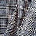 Ткань средней плотности, легкая и мягкая, приятная на ощупь, немного эластичная, хорошо драпируется и образует мягкие складки. Сочетание линий серого, белого, черного оттенков и принта "гусиная лапа" образует сложную красивую клетку. Монохромный строгий принт разбавляет еле уловимая элегантная тонкая полоска голубого и желтого цветов. Ткань отлично подойдет на костюмы, юбки, брюки, платья, жакеты.