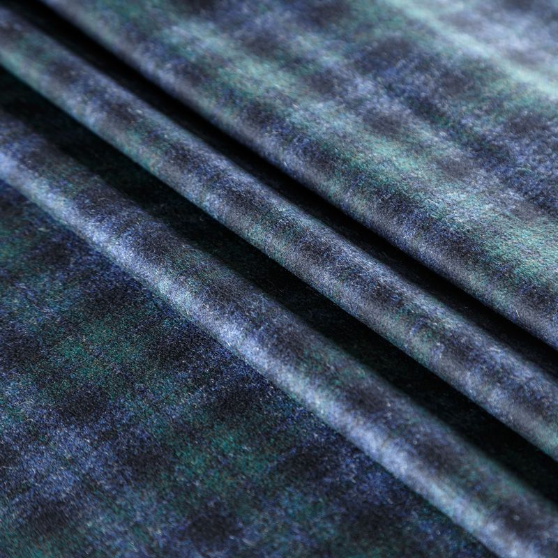 Итальянская шерстяная фланель в приглушенных синих и зеленых оттенках в клетку. Ткань костюмно-плательной плотности, очень мягкая, приятная на ощупь, не толстая, пластичная. Прерасно подойдет для пошива платья, сарафана, юбки, брюк, шорт, жакета, жилета, а также верхней одежды с дополнительным утеплителем.