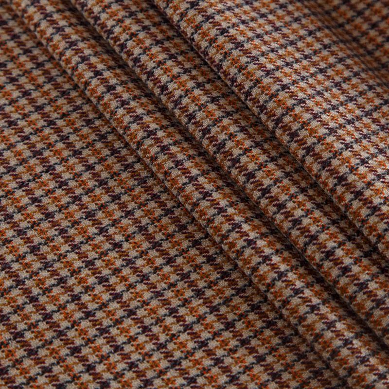 Итальянская костюмно-плательная шерсть средней плотности в бежевом оттенке в мелкую куриную лапку. Ткань не сухая, пластичная, приятная на ощупь, почти не мнется, хорошо драпируется. Отлично подойдет на костюм, жилет, жакет, легкое пальто, юбку, брюки, платье, сарафан, шорты.