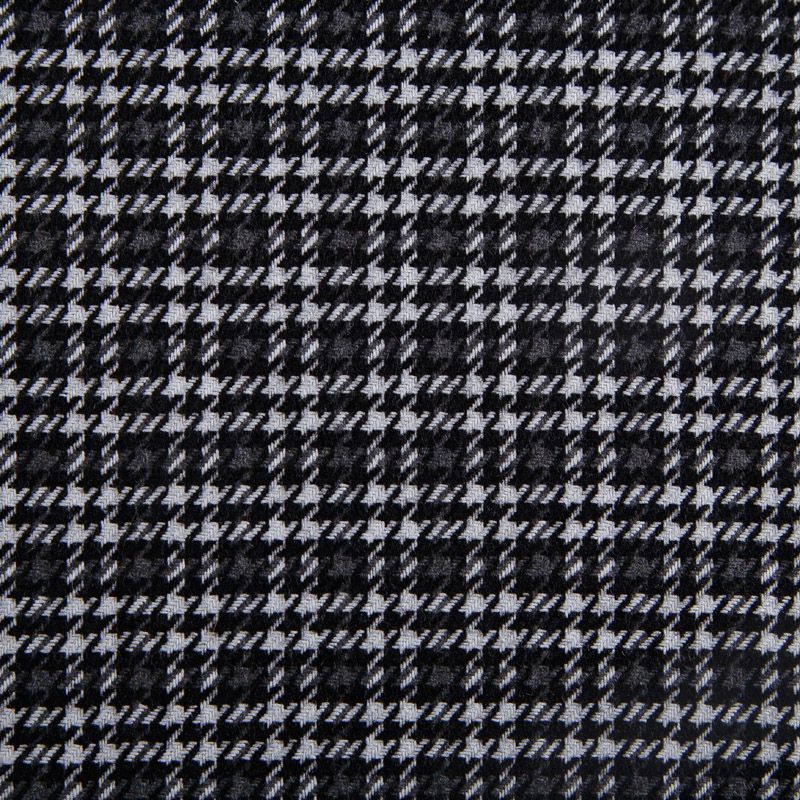 Итальянская костюмно-плательная смесовая ткань средней плотности в белом оттенке в мелкую серо-черную клетку. Ткань не сухая, формоустойчивая, пластичная, приятная на ощупь, почти не мнется, хорошо драпируется. Ткань отлично подойдет на костюм, жилет, жакет, легкое пальто, юбку, брюки, платье, сарафан, шорты.