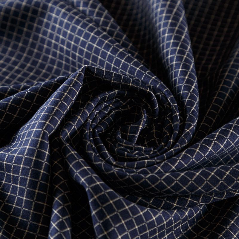 Оригинальная двухсторонняя ткань с принтом клетка с одной стороны и мелким геометрическим рисунком в виде молочных точек - с другой. Материал плотный, но не толстый, хорошо драпируется, тянется за счет эластана в составе, имеет мягкую поверхность с небольшими ворсинками. Прекрасно подходит для пошива платьев, сарафанов, юбок, брюк, жакетов.