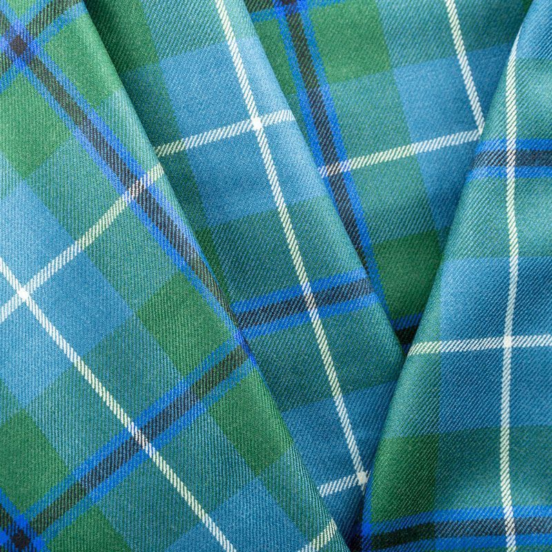 Итальянская костюмная шотландка средней плотности, мягкая и приятная на ощупь, формоустойчива, хорошо драпируется и образует мягкие складки. Сочетание линий синего, зеленого, молочного и черного цветов образует сложную красивую клетку. Ткань отлично подойдет на костюмы, юбки, брюки, платья, жакеты, для школьной формы.