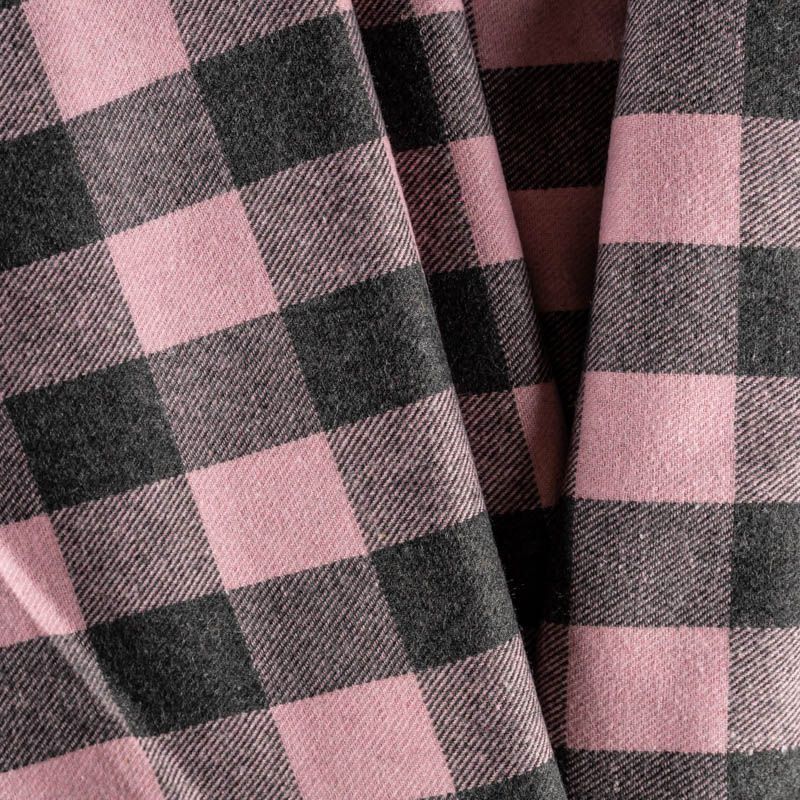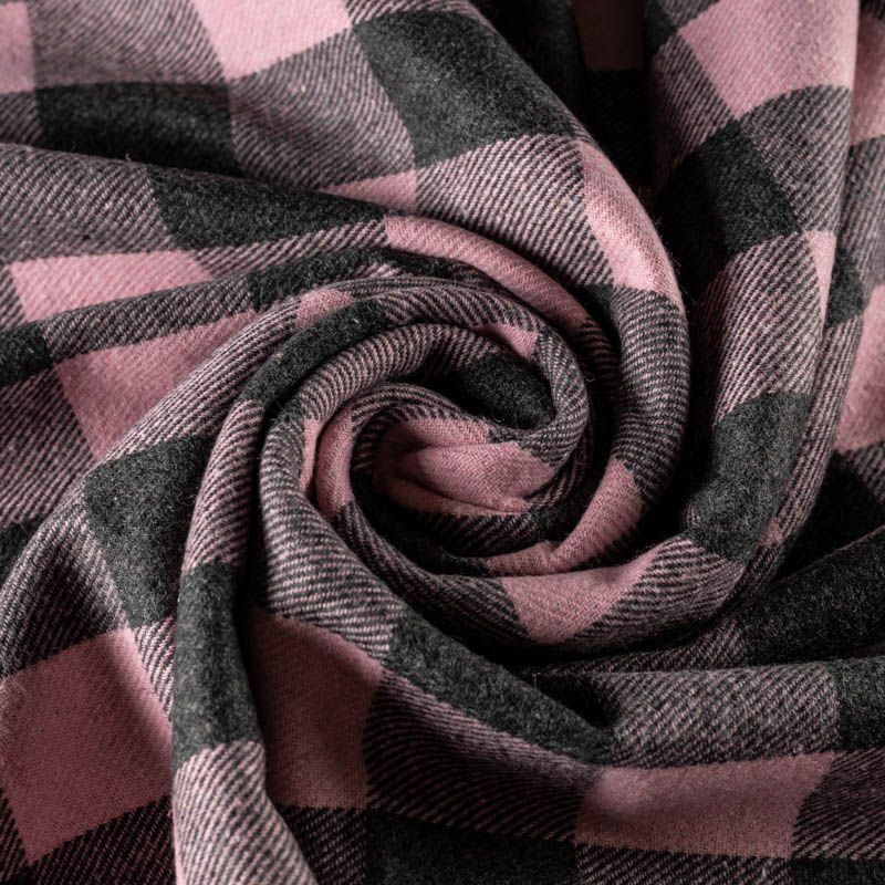 Костюмно-пальтовая ткань в нежную серо-розовую клетку с добавлением шерсти, средней плотности. Поверхность немного ворсистая, мягкая и приятная на ощупь. Прекрасно подойдет для теплых костюмов, пончо, легких пальто, кардиганов, юбок.