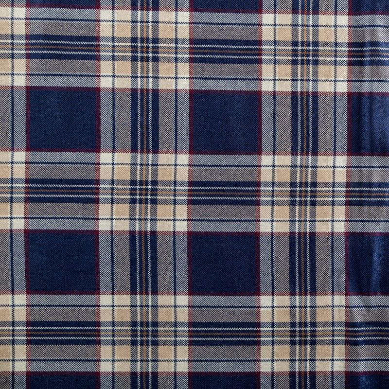 Итальянская костюмная шерсть средней плотности, мягкая и приятная на ощупь, формоустойчива, хорошо драпируется и образует мягкие складки. Сочетание линий синего, бежевого, красного и белого цветов образует сложную красивую клетку тартан. Ткань отлично подойдет на костюмы, юбки, брюки, платья, сарафаны, жакеты, для школьной формы.