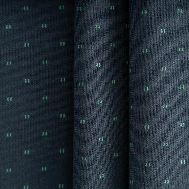 Восхитительная костюмная ткань глубокого темно-синего цвета с мелкими вкраплениями нитки мятного оттенка. Почти не мнется, приятная к телу, прекрасно драпируется, не сухая, пластичная, хорошо тянется. В косом крое ляжет красивыми ниспадающими складками. Идеально подойдет для костюма, брюк, а также юбок и платьев.