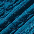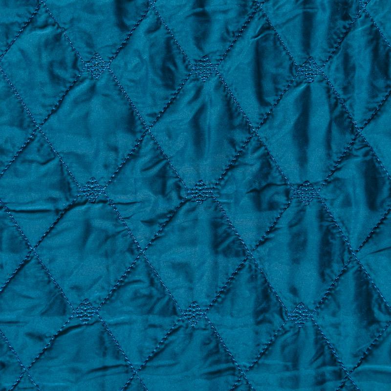 Двухслойная курточная ткань сине-зеленого оттенка, с геометрической стежкой нитками в тон полотну. Нижний слой - синтепон, верхний - полиэстер, по качеству напоминает болонь. Ткань легкая, пластичная, хорошо драпируется. Прекрасно подойдет для пошива пальто, курток, жилетов, накидок-кейпов, объемных сумок, одежды для домашних питомцев, туристического снаряжения.