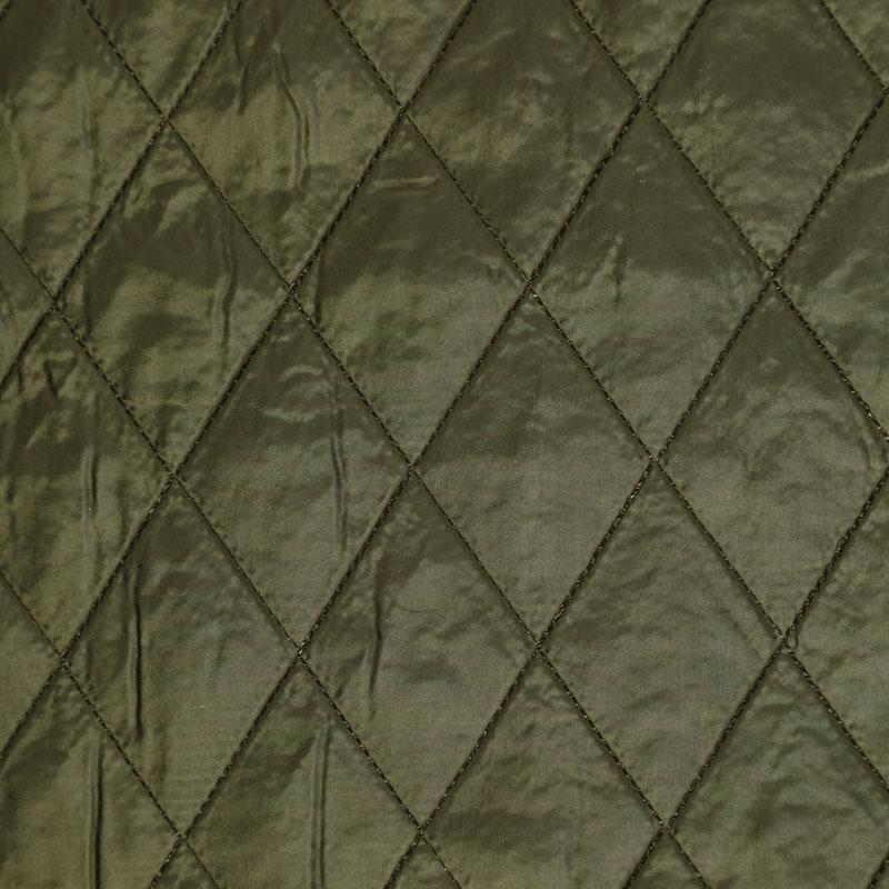 Двухслойная курточная ткань зеленого оттенка, простеганная не крупными ромбами. Нижний слой - синтепон, верхний - полиэстер, по качеству напоминает болонь. Очень мягкая и легкая, пластичная, хорошо драпируется. Прекрасно подойдет для пошива легких пальто, курток, жилетов, накидок-кейпов, объемных сумок.