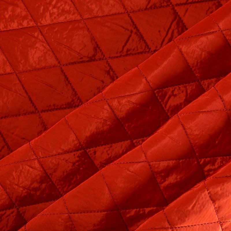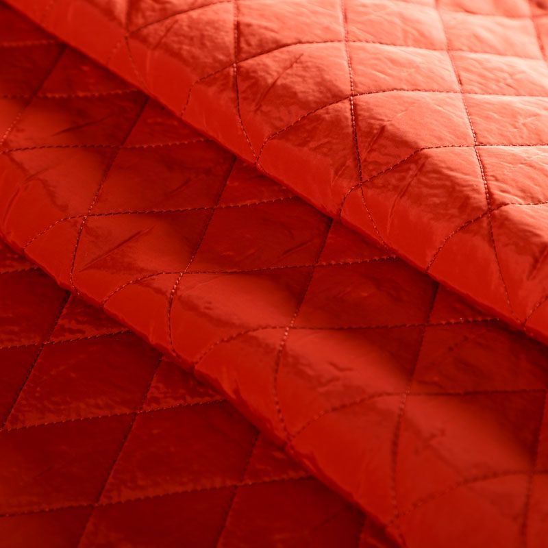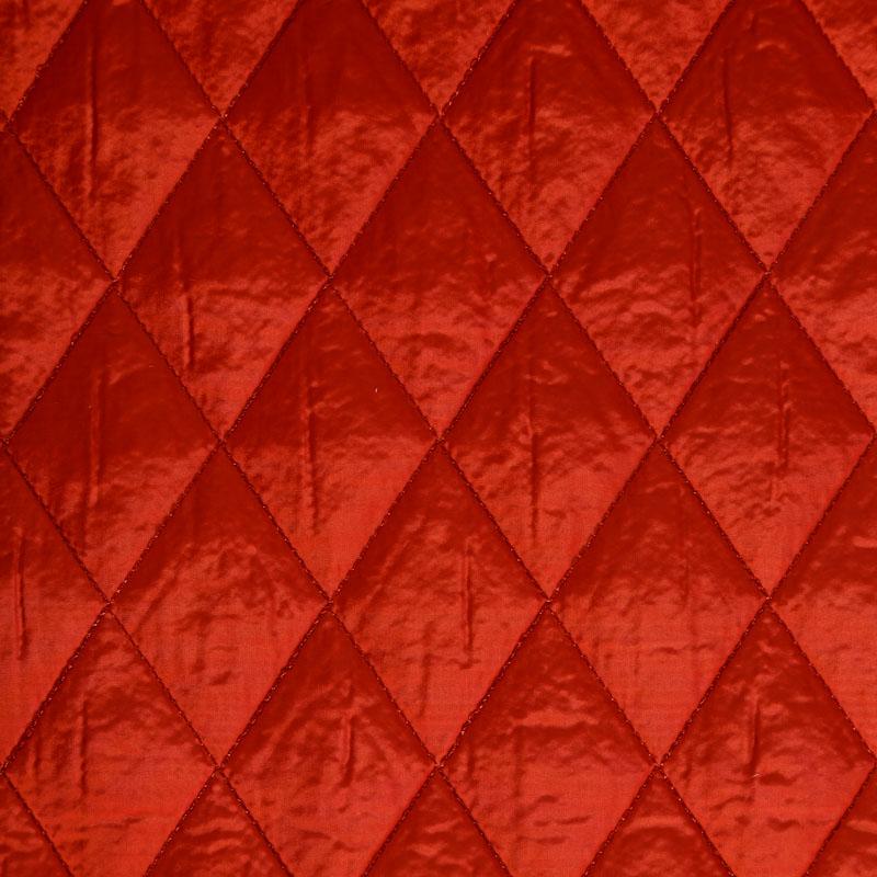 Двухслойная курточная ткань темного оранжевого оттенка, простеганная не крупными ромбами. Нижний слой - синтепон, верхний - полиэстер, по качеству напоминает болонь. Очень мягкая и легкая, пластичная, хорошо драпируется. Прекрасно подойдет для  пошива легких пальто, курток, жилетов, накидок-кейпов, объемных сумок.