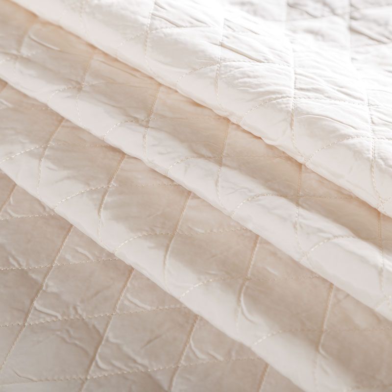 Двухслойная курточная ткань молочного оттенка, простеганная не крупными ромбами. Нижний слой - синтепон, верхний - матовый фактурный полиэстер. Очень мягкая и легкая, пластичная, хорошо драпируется. Прекрасно подойдет для  пошива легких пальто, бомберов, парки, курток, жилетов, накидок-кейпов, объемных сумок.