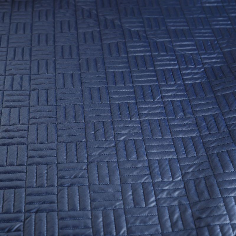 Двухслойная курточная ткань темно-синего оттенка, простеганная фигурной вышивкой нитками в тон. Нижний слой - синтепон, верхний - плотный матовый полиэстер. Очень мягкая и легкая, пластичная, хорошо драпируется. Прекрасно подойдет для  пошива легких пальто, курток, жилетов, накидок-кейпов, объемных сумок.