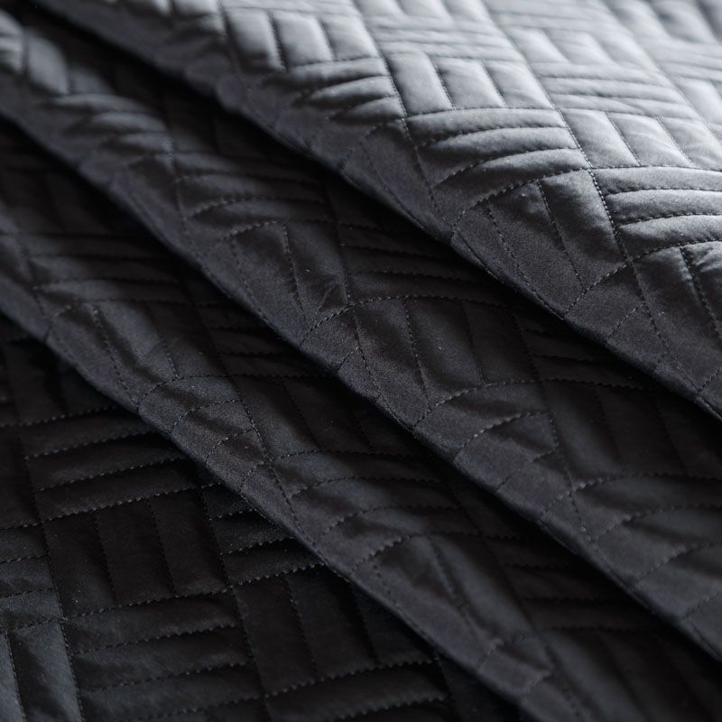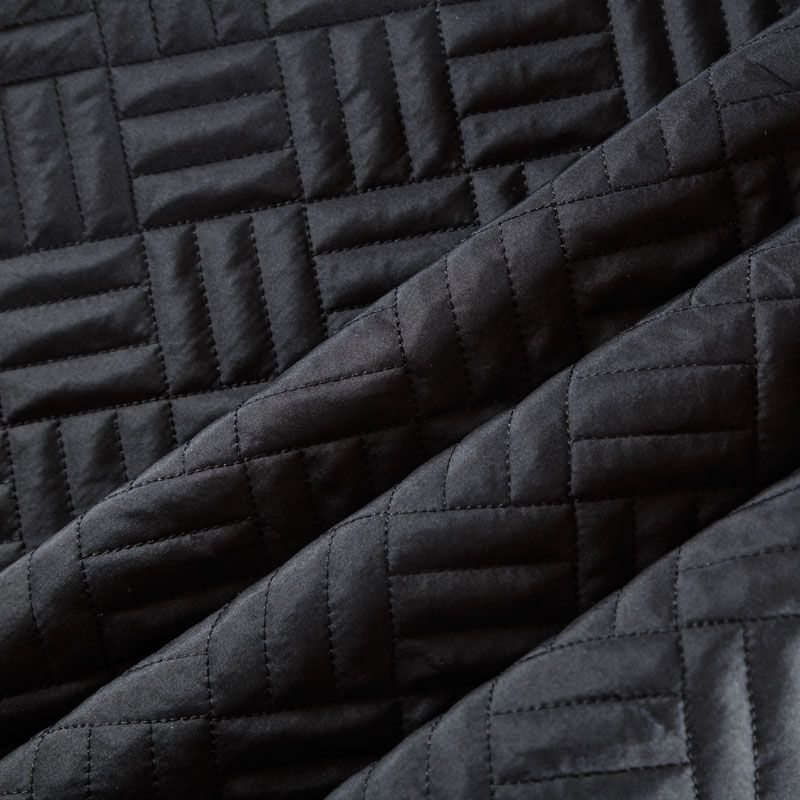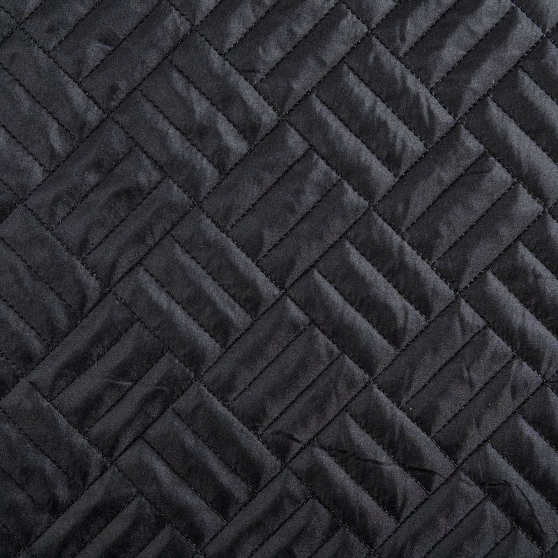 Двухслойная курточная ткань черного цвета, простеганная фигурной вышивкой нитками в тон. Нижний слой - синтепон, верхний - плотный матовый полиэстер. Очень мягкая и легкая, пластичная, хорошо драпируется. Прекрасно подойдет для  пошива легких пальто, курток, жилетов, накидок-кейпов, объемных сумок.