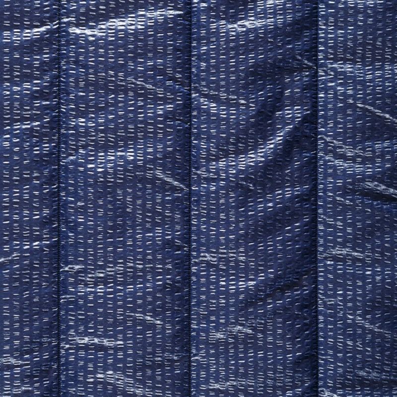 Итальяская двухслойная курточная ткань темно-синего оттенка, простеганная широкими полосами вдоль кромки. Нижний слой - воздушный синтепоновый утеплитель, верхний - матовая плащевая ткань с жатым эффектом. Очень мягкая и легкая, пластичная, хорошо драпируется. Прекрасно подойдет для  пошива легких пальто, бомберов, парки, курток, жилетов, накидок-кейпов, объемных сумок.