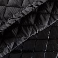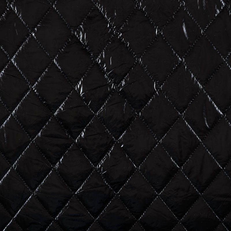 Трехслойная курточная стежка черного цвета, простеганная не крупными ромбами. Верхний слой - полиэстер, по качеству напоминающий болонь, средний слой - синтепон, нижний слой - подкладочная ткань в тон лицевой. Очень мягкая и легкая, пластичная, хорошо драпируется. Прекрасно подойдет для пошива легких пальто, курток, жилетов, накидок-кейпов, объемных сумок.