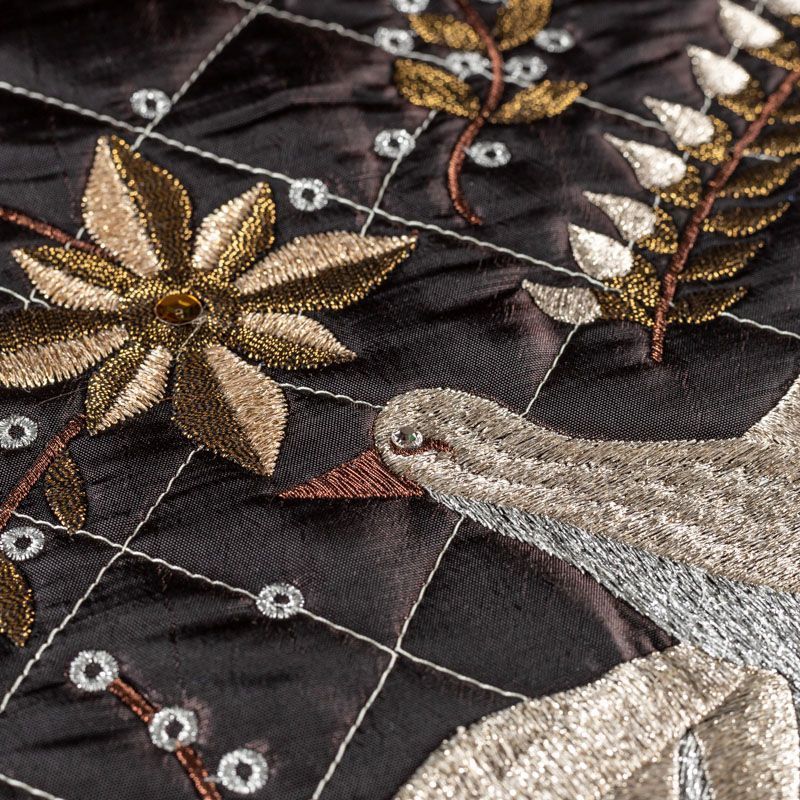Ткань курточная с вышивкой К20-323 темный шоколад в Казани