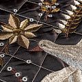 Курточный купон на синтепоне и подкладке, простеганный не крупными ромбами размером 3,5х3,5 см. С лицевой стороны тонкая, но прочная плащевая ткань с фантазийной вышивкой, с изнаночной - однотонная ткань песочного оттенка. Материал мягкий, объемный и "воздушный", хорошо держит форму и подойдет для пошива легких пальто, курток, жилетов, накидок-кейпов, парки.