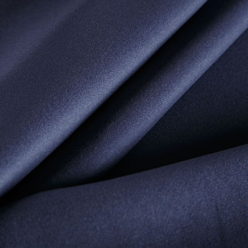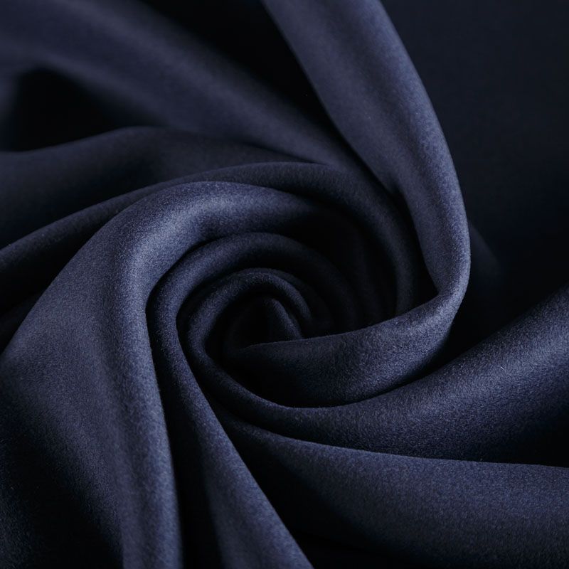 Пальтовая итальянская шерсть в темно-синем оттенке. Ткань плотная, достаточно теплая, комфортная для одежды на сезон осень-зима. Полотно имеет едва заметный ворс, направление ворса нужно учитывать при крое изделия. Мягкое и нежное на ощупь, не толстое и не тяжелое, хорошо держит форму. Прекрасно подойдет для пошива женских пальто, теплых костюмов, кейпов, мягких бомберов, жилетов и головных уборов.