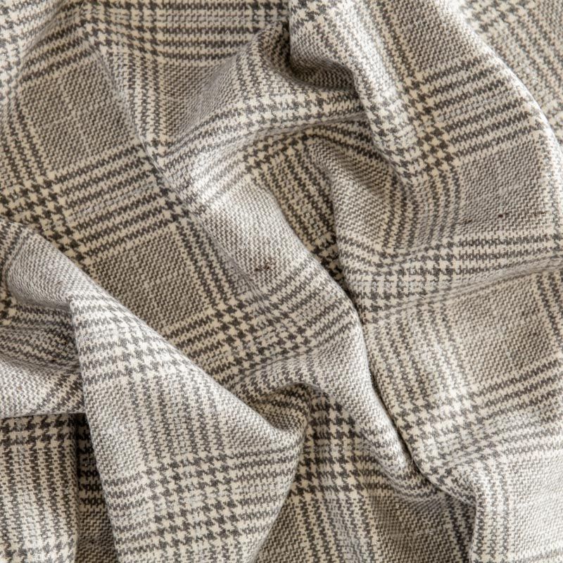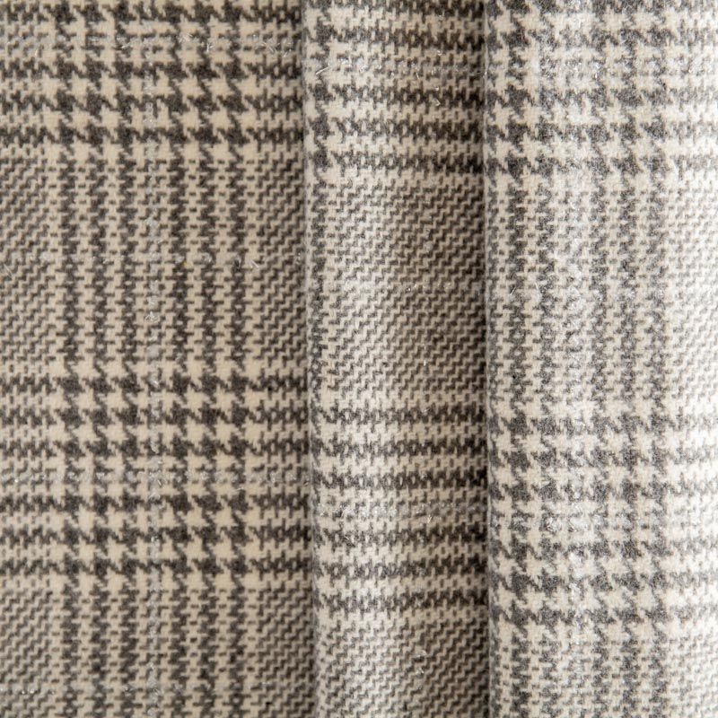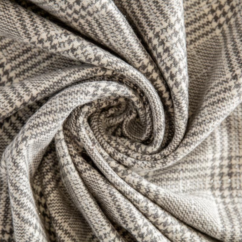 Плотная пальтовая ткань с добавлением шерсти, мягкая и приятная на ощупь, формоустойчива, хорошо драпируется. Переплетение нитей серого, белого цветов в узоре "гусиная лапка" и люрексной нити образует сложную красивую клетку тартан. Ткань отлично подойдет для пошива пальто, теплых костюмов, юбки, шорт, жакета, кейпа, жилета.