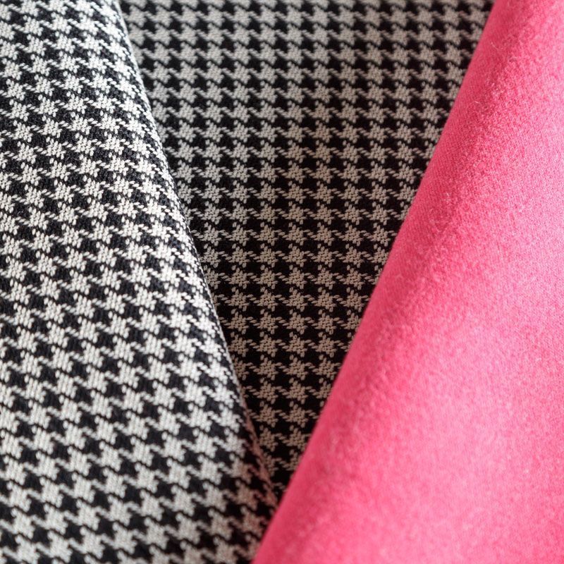 Итальянская пальтово-костюмная двухсторонняя ткань от известного бренда. Одна сторона - чёрно-белая мелкая "гусиная лапка", другая сторона оттенка фуксии. Ткань достаточно плотная, формоустойчивая, пластичная, не колючая, очень комфортна в носке и пошиве. Слои разделяются, что позволяет сшить изделия со скрытыми швами. Оригинальный, яркий и красивый вариант для  пошива лёгкого пальто, тренча, парки, бомбера, тёплого жакета или юбки.