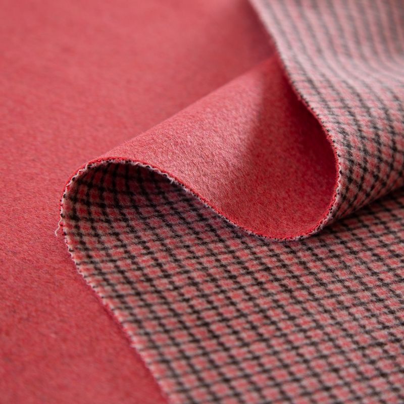 Ткань пальтовая двухсторонняя 040-16738 розовый/клетка