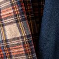 Пальтовая полушерстяная двухсторонняя ткань, мягкая и приятная на ощупь, формоустойчива, хорошо драпируется. Сочетание желтого, голубого, красного и черного цветов образует сложную красивую клетку на песочном фоне на лицевой стороне, изнанка - однотонный сине-голубой трикотаж. Ткань отлично подойдет на пальто любых фасонов, куртки-рубашки, теплого кардигана.
