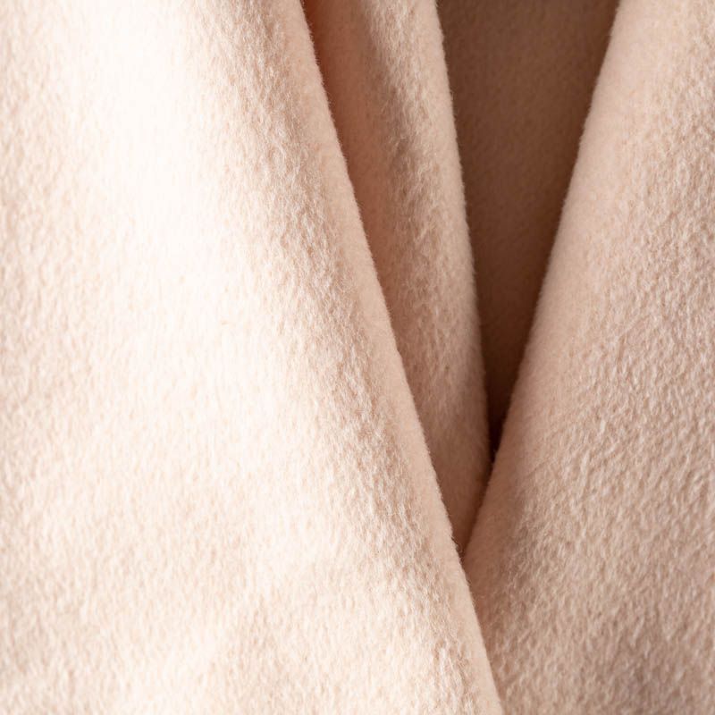 Плотная пальтовая ткань с коротеньким мягким ворсом на лицевой стороне и ровная на изнаночной. Она легко раскраивается, не скользит и не осыпается на срезах. Прекрасно подойдет для пошива женских пальто, теплых костюмов, кейпов, мягких бомберов, жилетов и головных уборов.