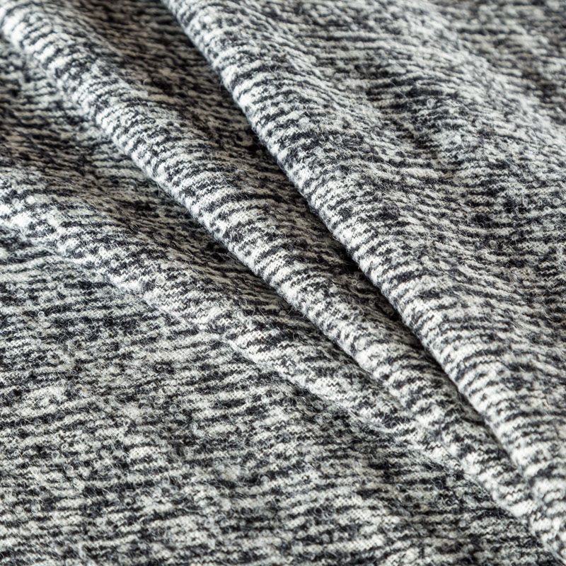 Итальянская смесовая пальтовая ткань с черно-белым абстрактным узором. Очень теплая, пластичная, объемная, немного рыхлая. Подойдет для пошива демисезонного пальто на подкладе, кардигана, жилета, теплого костюма.