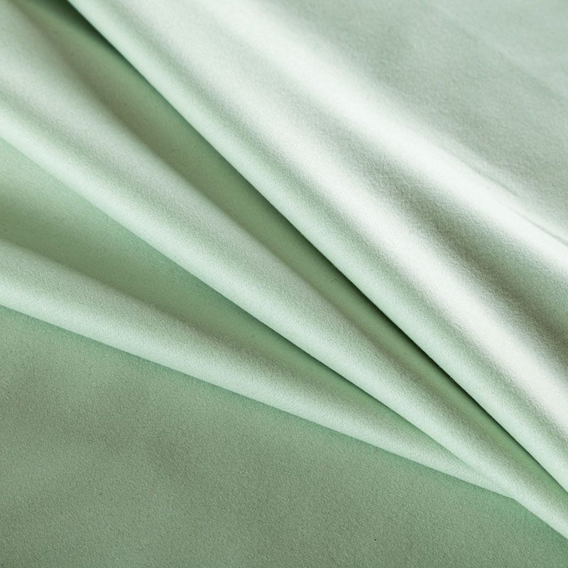 Пальтовая итальянская шерсть в светлом оттенке мяты. Ткань плотная, достаточно теплая, комфортная для одежды на сезон осень-зима. Полотно имеет короткий ворс. Мягкое и нежное на ощупь, не толстое и не тяжелое, хорошо держит форму. Прекрасно подойдет для пошива женских пальто, теплых костюмов, кейпов, мягких бомберов, жилетов и головных уборов.