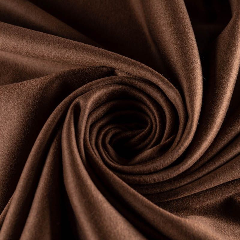 Пальтовая итальянская шерсть в коричневом оттенке. Ткань плотная, достаточно теплая, комфортная для одежды на сезон осень-зима. Полотно имеет короткий ворс. Мягкое и нежное на ощупь, не толстое и не тяжелое, хорошо держит форму. Прекрасно подойдет для пошива женских пальто, теплых костюмов, кейпов, мягких бомберов, жилетов и головных уборов.