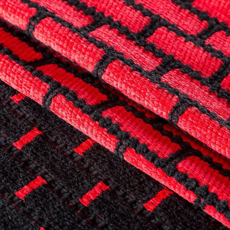 Оригинальная итальянская пальтовая 2-х сторонняя ткань в красно-черной гамме с жаккардовым геометрическим узором. Ткань плотная, достаточно теплая, комфортная для одежды на сезон осень-зима. Полотно мягкое, не тяжелое, хорошо держит форму. Прекрасно подойдет для пошива женских пальто, теплых костюмов, кейпов, мягких бомберов, жилетов и головных уборов.