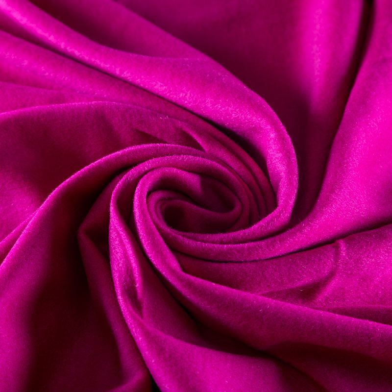 Пальтовая итальянская шерсть с добавлением кашемира в ярком оттенке фуксии. Ткань плотная, достаточно теплая, комфортная для одежды на сезон осень-зима. Полотно имеет короткий ворс, мягкое и нежное на ощупь, не толстое и не тяжелое, хорошо держит форму. Прекрасно подойдет для пошива женских пальто, теплых костюмов, кейпов, мягких бомберов, жилетов и головных уборов.