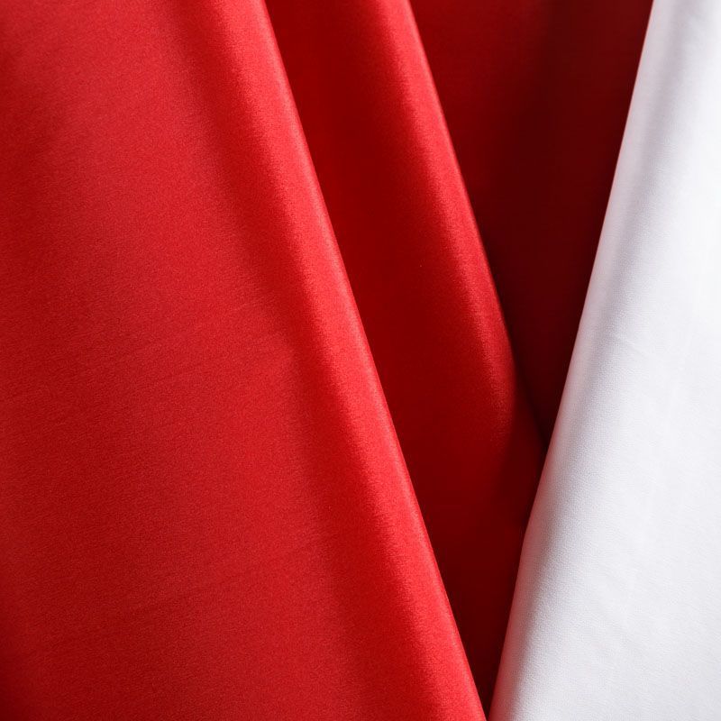 Плотная прочная плащевая ткань красного цвета с полиуретановым белым покрытием с изнаночной стороны. Поверхность ткани матовая, ровная и гладкая. Подходит для изготовления  плащей, курток, ветровок, бомберов, одежды для домашних питомцев, туристического снаряжения.