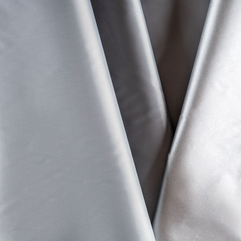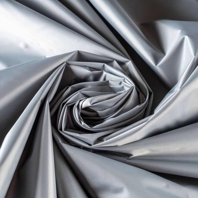 Это матовая, тонкая, гладкая, но очень прочная ткань с легким блеском. На ее изнаночную сторону нанесена пропитка серебристого цвета, за счет которой материал становится менее прозрачным, зато более яркого цвета. Шьют из нее куртки, ветровки, плащи и особенно она хороша для пуховиков: обработка такой пропиткой дает возможность отлично удерживать пух внутри изделия.