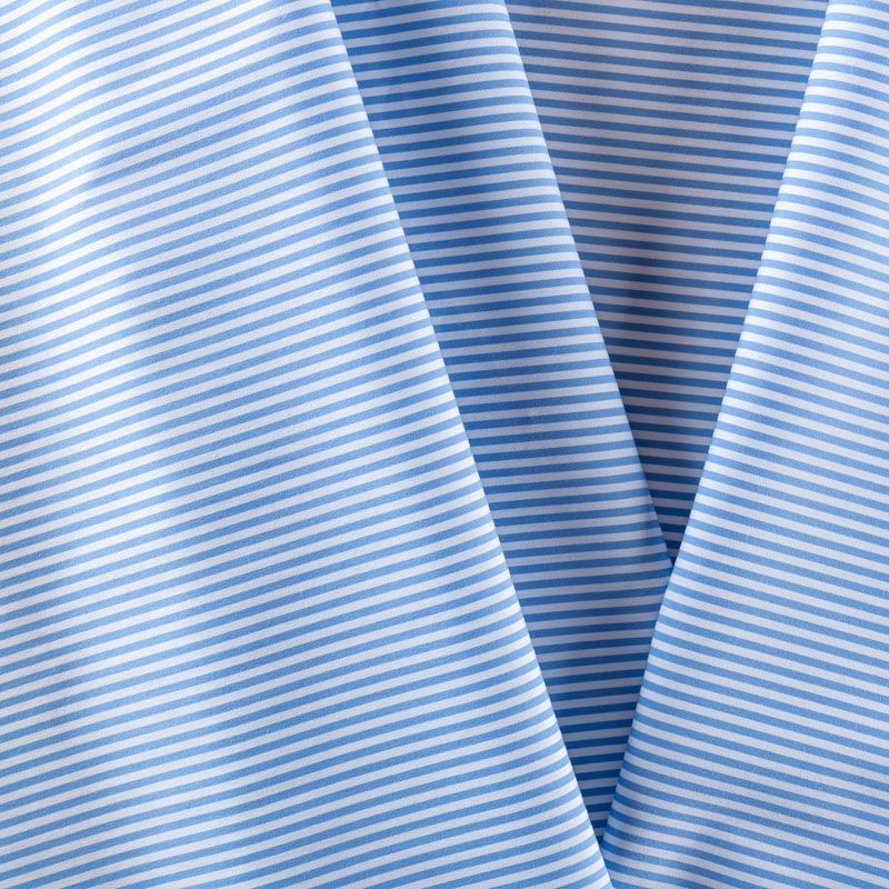 Итальянский плательно-рубашечный хлопок в частую узкую полоску светло-голубого оттенка. Ткань мягкая, лёгкая, непрозрачная, пластичная и приятная к телу, хорошо драпируется, имеет гладкую матовую поверхность и сатиновое плетение. Прекрасно подойдет как для пошива платья-рубашки, сарафана, платьев различных фасонов, туники, топа, летнего костюма, комбинезона.