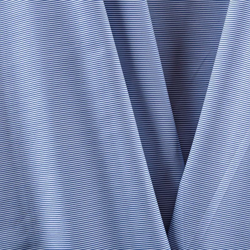 Итальянский плательно-рубашечный хлопок в частую узкую полоску темно-синего оттенка. Ткань мягкая, лёгкая, непрозрачная, пластичная и приятная к телу, хорошо драпируется, имеет гладкую матовую поверхность и сатиновое плетение. Прекрасно подойдет как для пошива платья-рубашки, сарафана, платьев различных фасонов, туники, топа, летнего костюма, комбинезона.