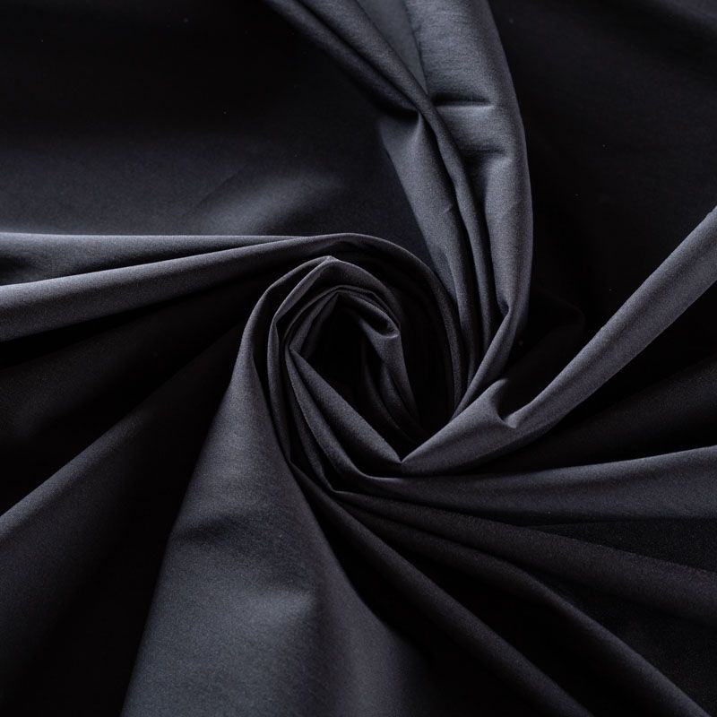 Плательно-рубашечная смемовая ткань черного цвета. Ткань мягкая, лёгкая, непрозрачная, пластичная и приятная к телу, хорошо драпируется, тянется за счет эластана в составе, имеет гладкую матовую поверхность и сатиновое плетение. Прекрасно подойдет как для пошива платья-рубашки, сарафана, платьев различных фасонов, туники, топа, летнего костюма, комбинезона.