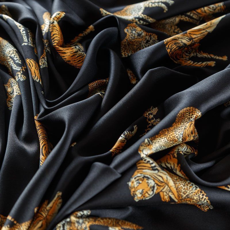 Итальянская плательно-рубашечная ткань с сатиновым блеском и анималистическим принтом. Ткань мягкая, лёгкая, непрозрачная, пластичная и приятная к телу, хорошо драпируется, имеет гладкую матовую поверхность и сатиновое плетение. Прекрасно подойдет как для пошива платья-рубашки, сарафана, платьев различных фасонов, туники, топа, летнего костюма, комбинезона.