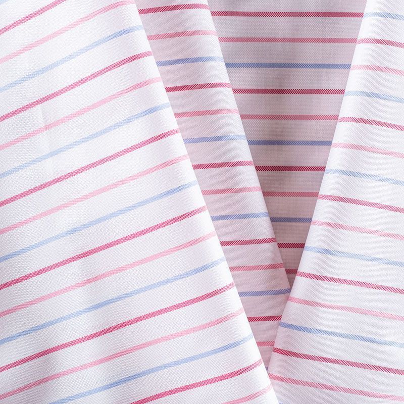 Итальянский плательно-рубашечный хлопок в красно-голубую полоску средней ширины. Ткань мягкая, лёгкая, непрозрачная, пластичная и приятная к телу, хорошо драпируется, имеет гладкую матовую поверхность и сатиновое плетение. Прекрасно подойдет как для пошива платья-рубашки, сарафана, платьев различных фасонов, туники, топа, летнего костюма, комбинезона.
