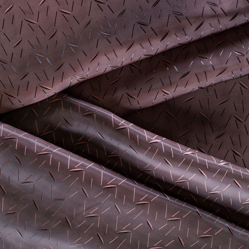Подкладочная ткань легкая, с мелким абстрактным жаккардовым рисунком, с красивым блеском. Не просвечивает, хорошо скользит. Подойдет для изготовления таких изделий, как пальто, костюмы, куртка, шуба, платье, жакет.