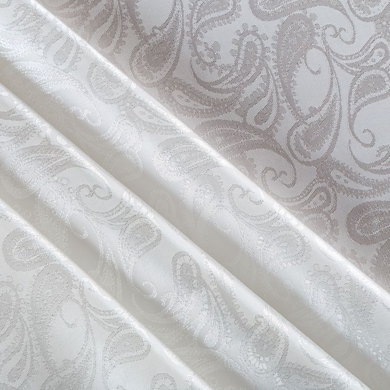 Итальянская вискозная подкладочная ткань молочного оттенка с жаккардовым узором пейсли и красивым лоском. Полотно средней плотности, легкое, не просвечивает, хорошо скользит, не тянется. Подойдет для изготовления таких изделий, как пальто, костюмы, куртка, шуба, платье, жакет.