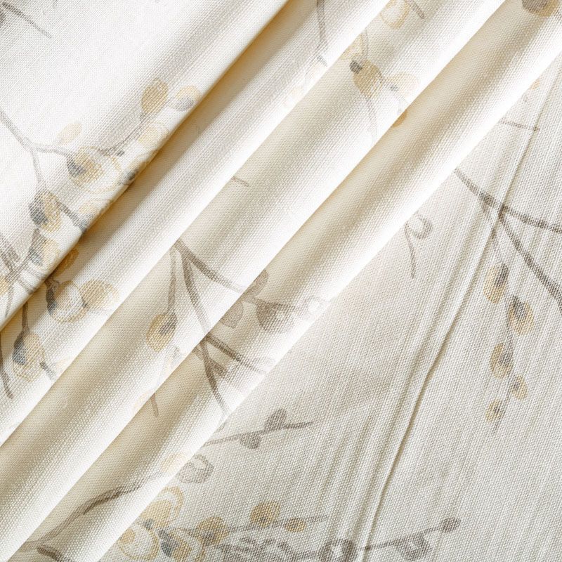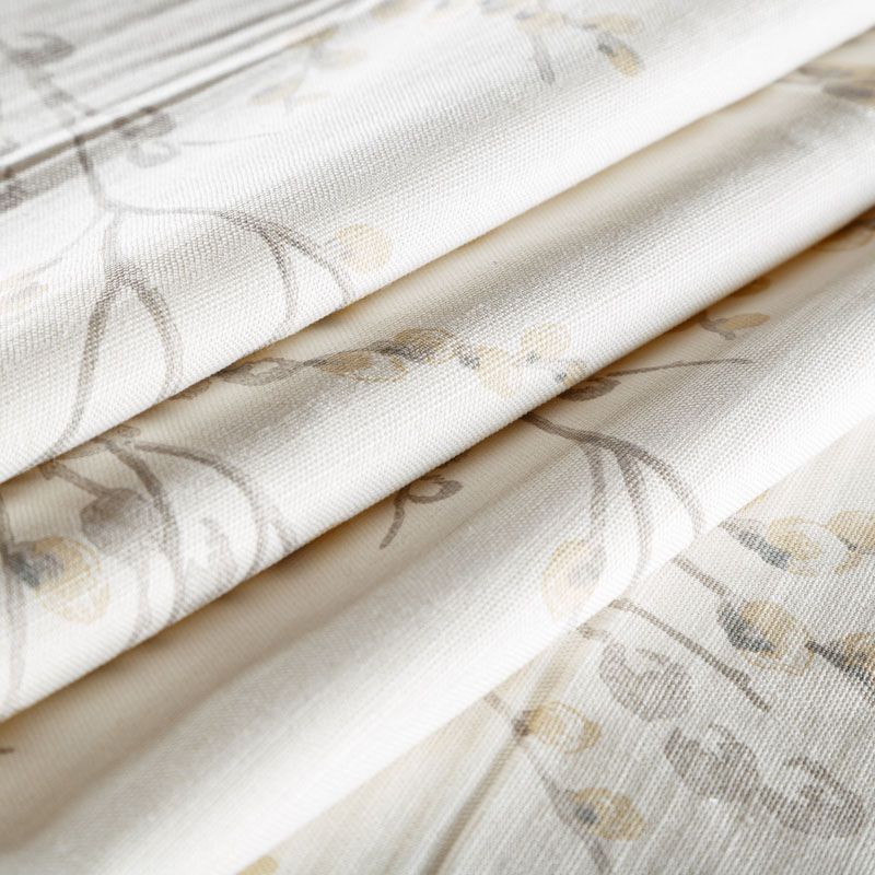 Хлопковая портьерная ткань с изящным весенним принтом в бежевом оттенках на светлом теплом фоне. Ткань средней плотности, без блеска, хорошо драпируется, имеет полонтяное переплетение. Можно использовать для пошива портьер, римской шторы, салфеток, столового белья, подушек, покрывал и других предметов текстильного интерьера.