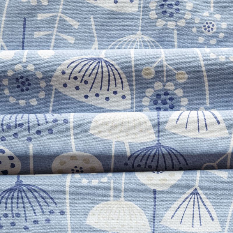 Хлопковая портьерная ткань Берген из коллекции Сканди английского производителя Fryett's Fabric. На голубой текстурированной основе наснесен принт в виде стилизованных растений и цветов в монохромной гамме. Ткань средней плотности, прекрасно держит форму, драпируется в устойчивые складки. Подойдет для классических портьер, римских штор, покрывал, подушек, скатертей, салфеток и других элементов текстильного интерьера как в самостоятельном исполнении, так и качестве компаньона к однотонным варинтам.